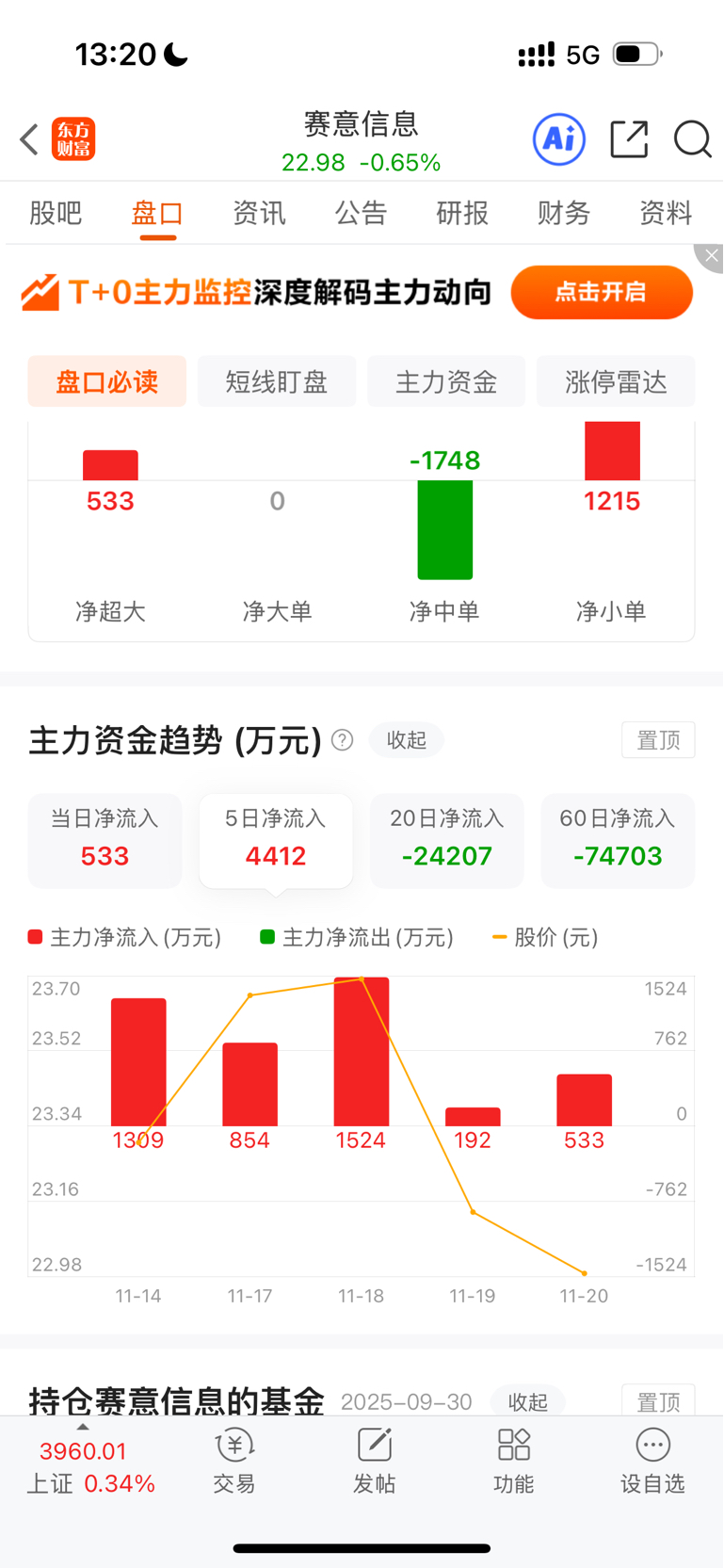 $赛意信息(SZ300687)$ 你怎么做到净流入,股价在破新低。如果一直流出,跌还能理解