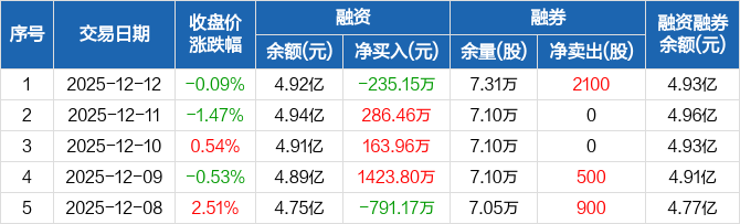 赛意信息:融资净偿还235.15万元,融资余额4.92亿元(12-12)