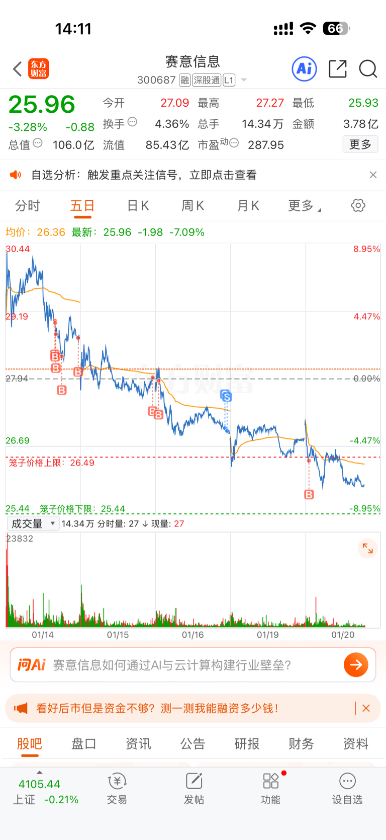 $赛意信息(SZ300687)$ 打我买进来一直跌