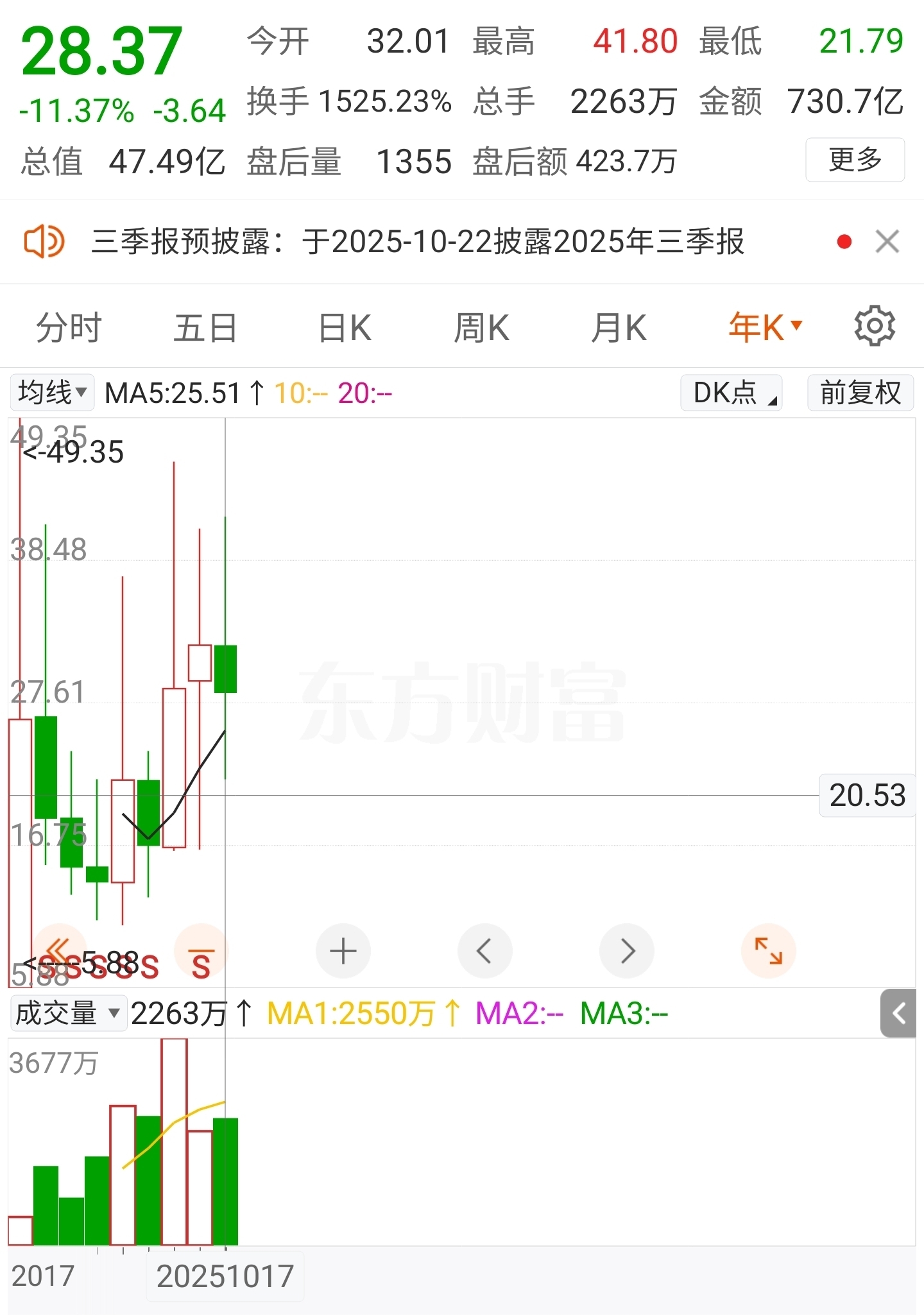 马字辈年跌幅第一的股