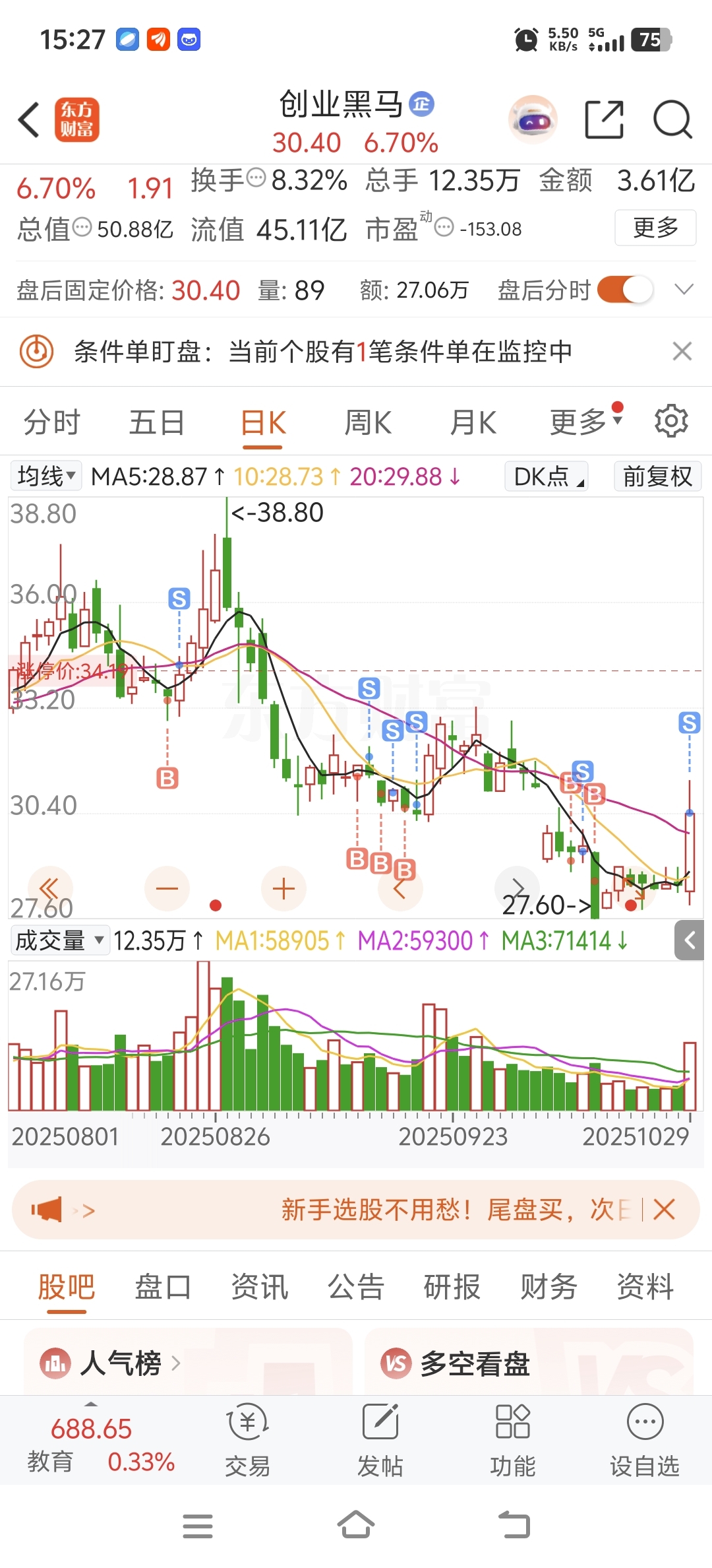 $创业黑马(SZ300688)$ 5进5出,每一次都能薅到羊毛,主力你个憨憨