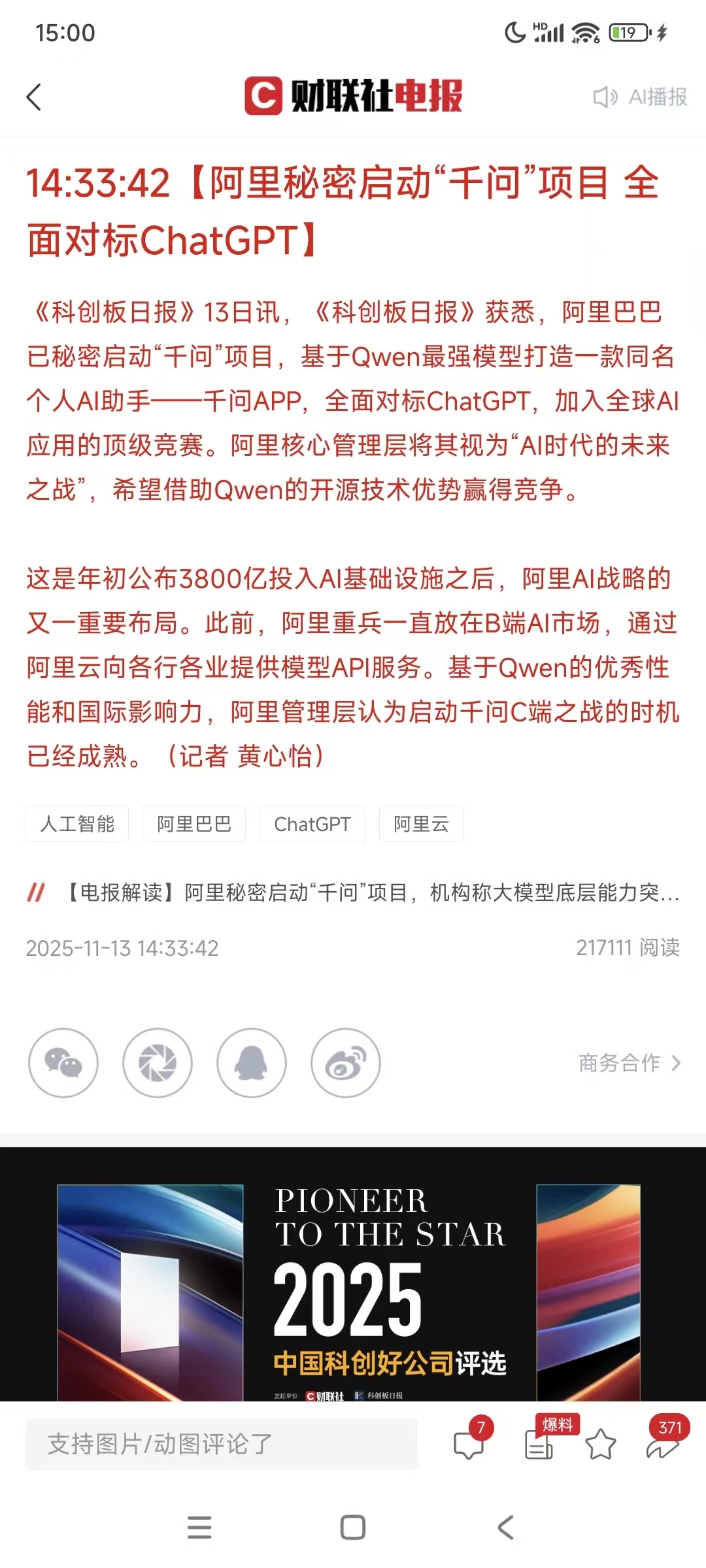 这是尾盘拉的消息