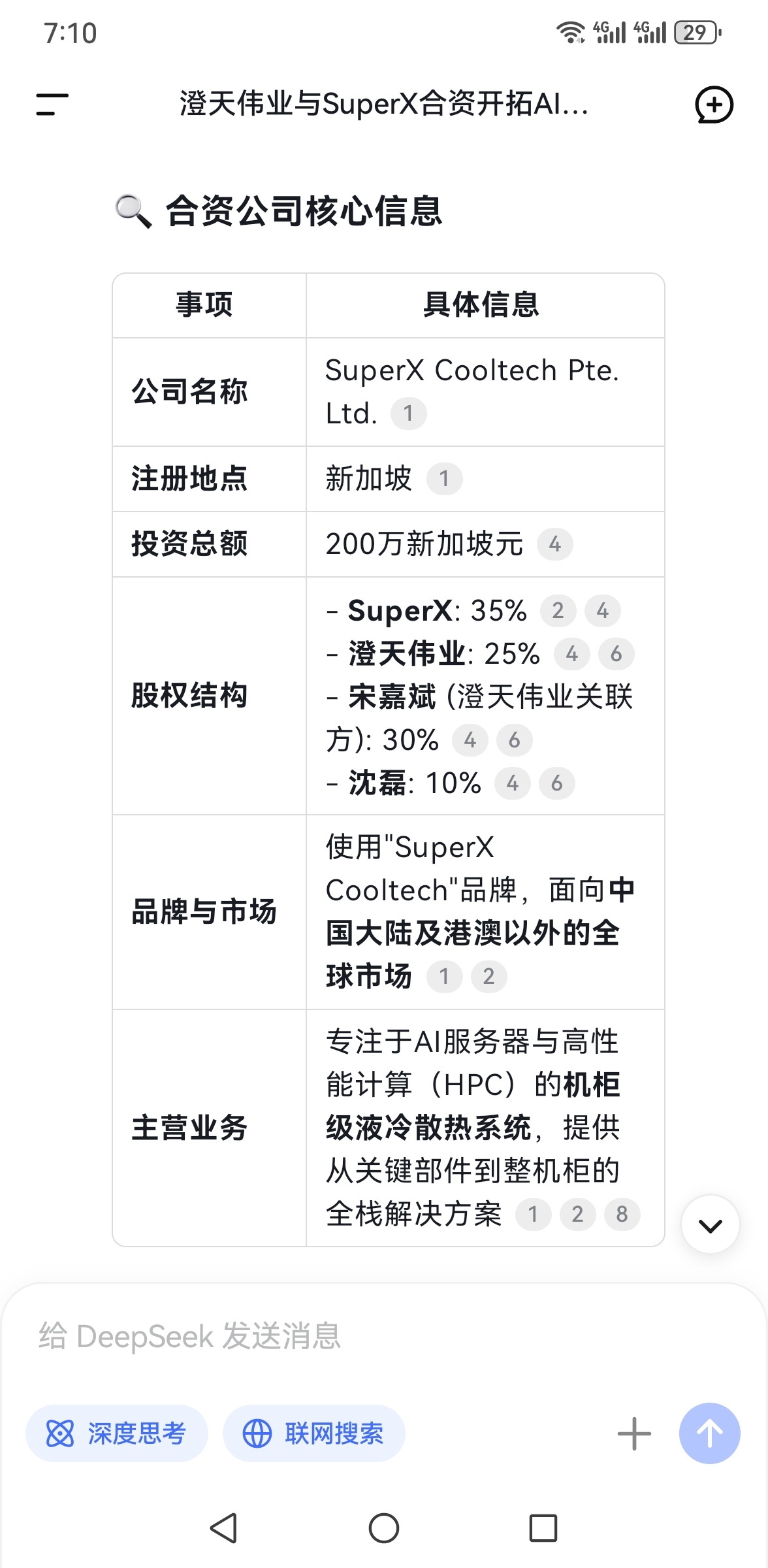 $澄天伟业(SZ300689)$ 合资公司专注于Ai服务器和高性能计算(HPC)的机柜级液冷散热系统!
