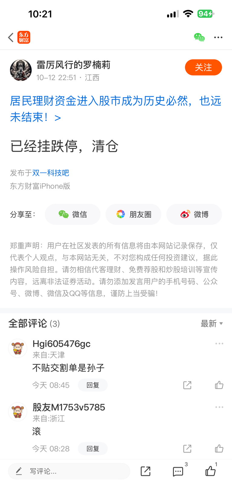 温馨提示: 1.根据《证券法》规定,禁止编造、传播虚假信息或者误导性信息,扰乱证券市场;2.用户在本社区发表的所有资料、言论等仅代表个人观点,与本网站立场无关,不对您构成任何投资建议。用户应基于自己的独立判断,自行决定证券投资并承担相应风险。《东方财富社区管理规定》
