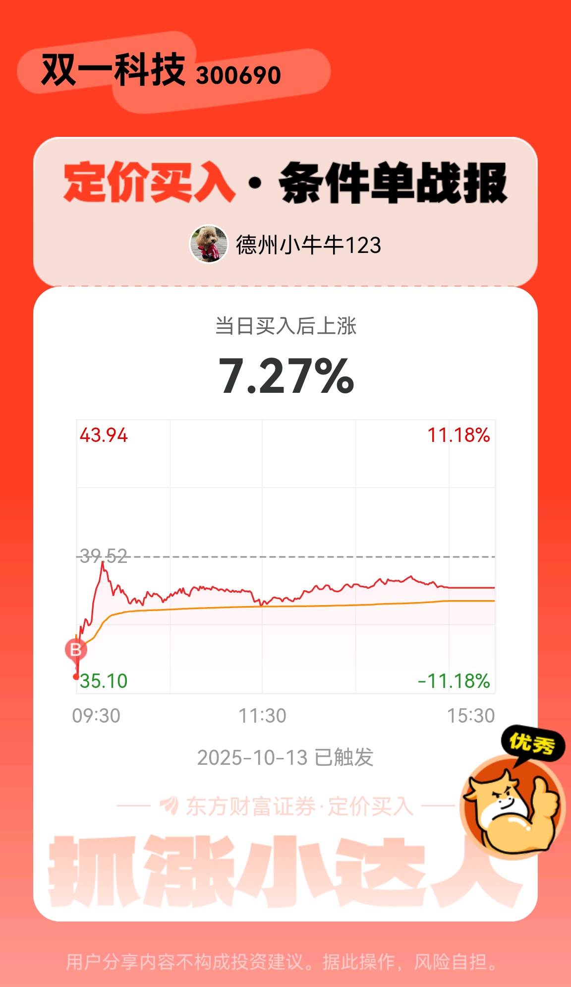 #条件单交流# #定价买入晒单# 我方派出一个定价买入条件单,立时就征服了$双一科技(SZ300690)$