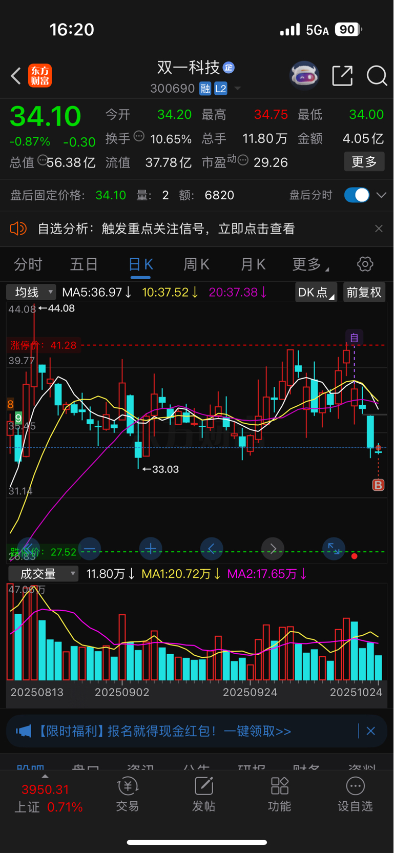 $双一科技(SZ300690)$ 振荡期,在箱体底部,等待拉升