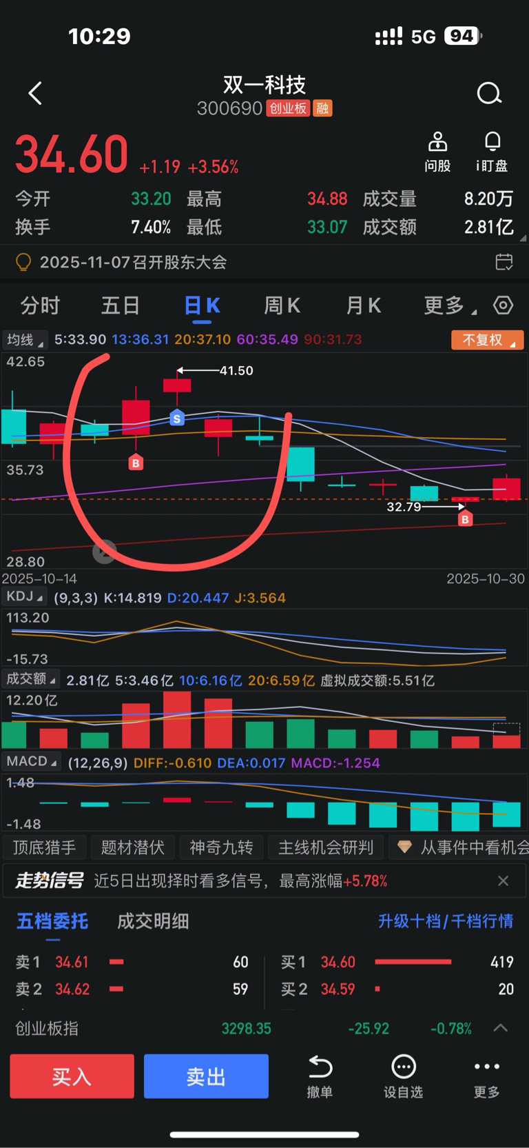 $双一科技(SZ300690)$ 大家可以看我第一次做这个股票的买点和卖点、可以往前面翻我的复盘,这是第二次做。