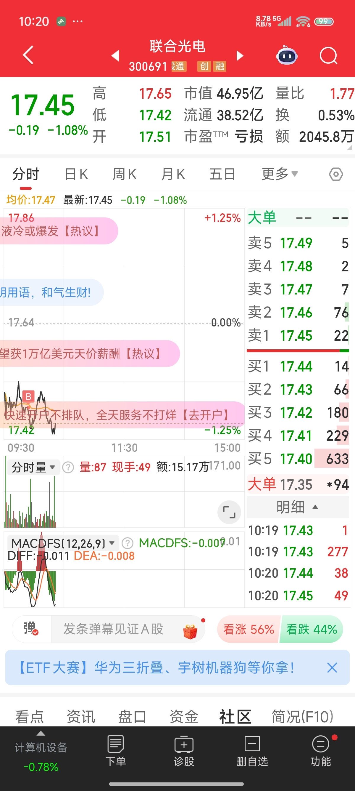 $联合光电(SZ300691)$ 套了一个多月,今天加点仓,下周争取做t