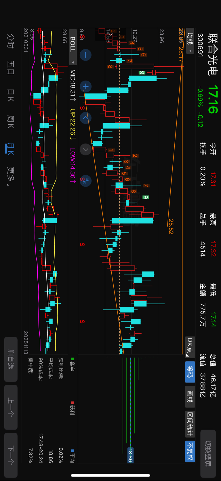 手机上看看,强支撑趋势,在破位中,这个位置守不住就下到15,我今天在配合你出点货,哪天等你出量了,我在回来扫点货,