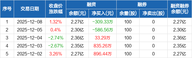 联合光电:融资净偿还309.33万元,融资余额2.27亿元(12-08)