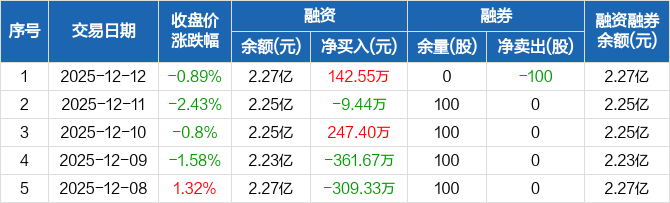 联合光电:融资净买入142.55万元,融资余额2.27亿元(12-12)