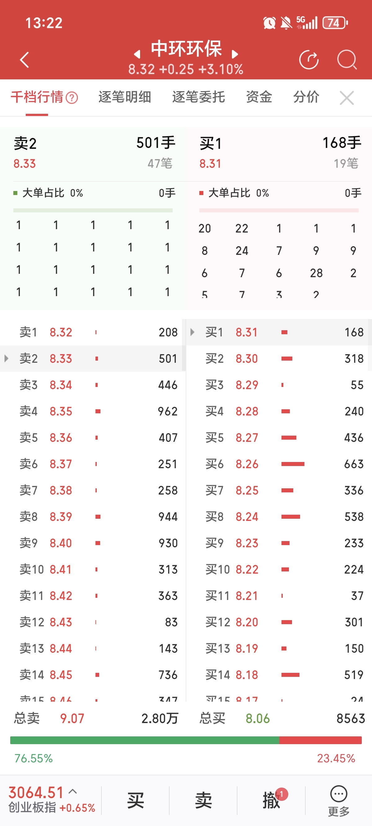 $中环环保(SZ300692)$ 没量!?!!!全是1手卖单????