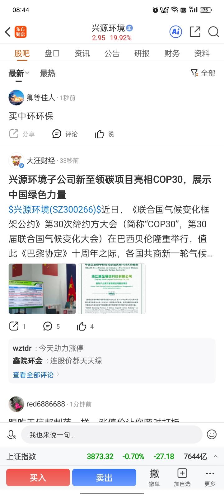 $中环环保(SZ300692)$ 我又去叫人买来买,每天一帖