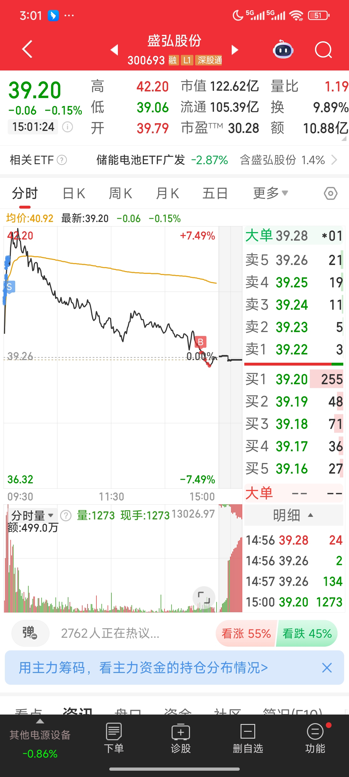 $盛弘股份(SZ300693)$ 尾盘买了2层仓被套了