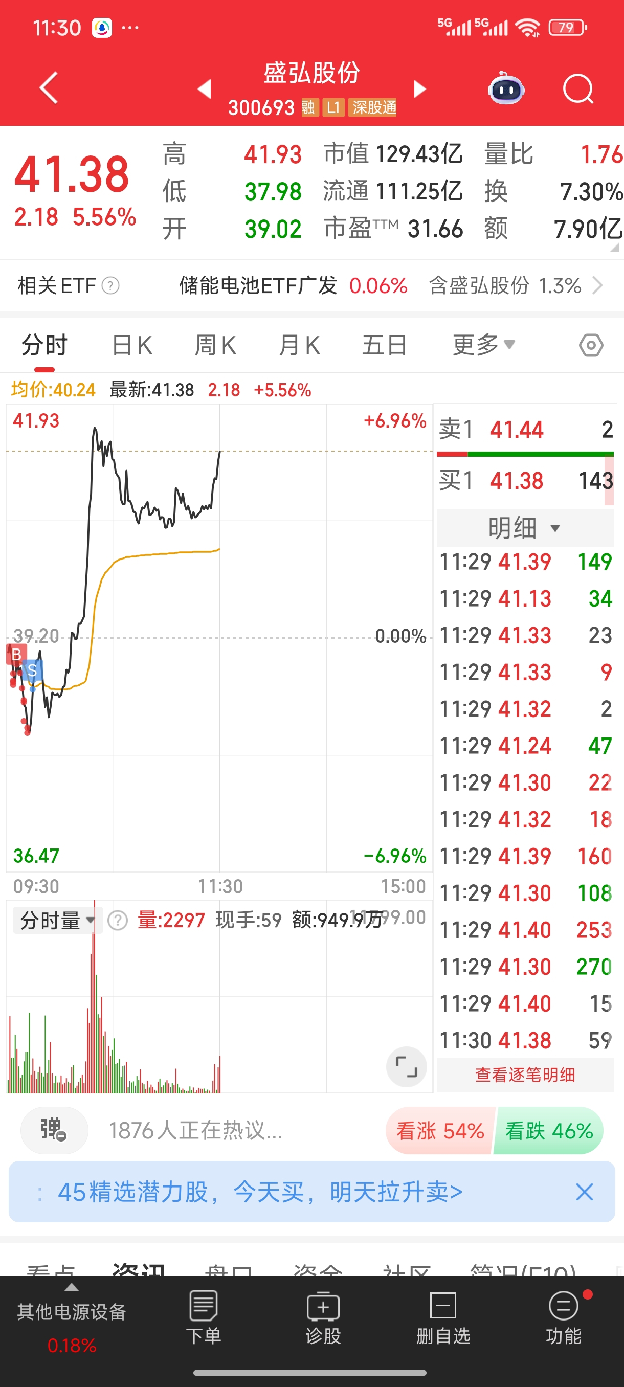 $盛弘股份(SZ300693)$ 难受,早上水下低吸少了,太难受了,只有两层仓,让你们看我的笑话吧