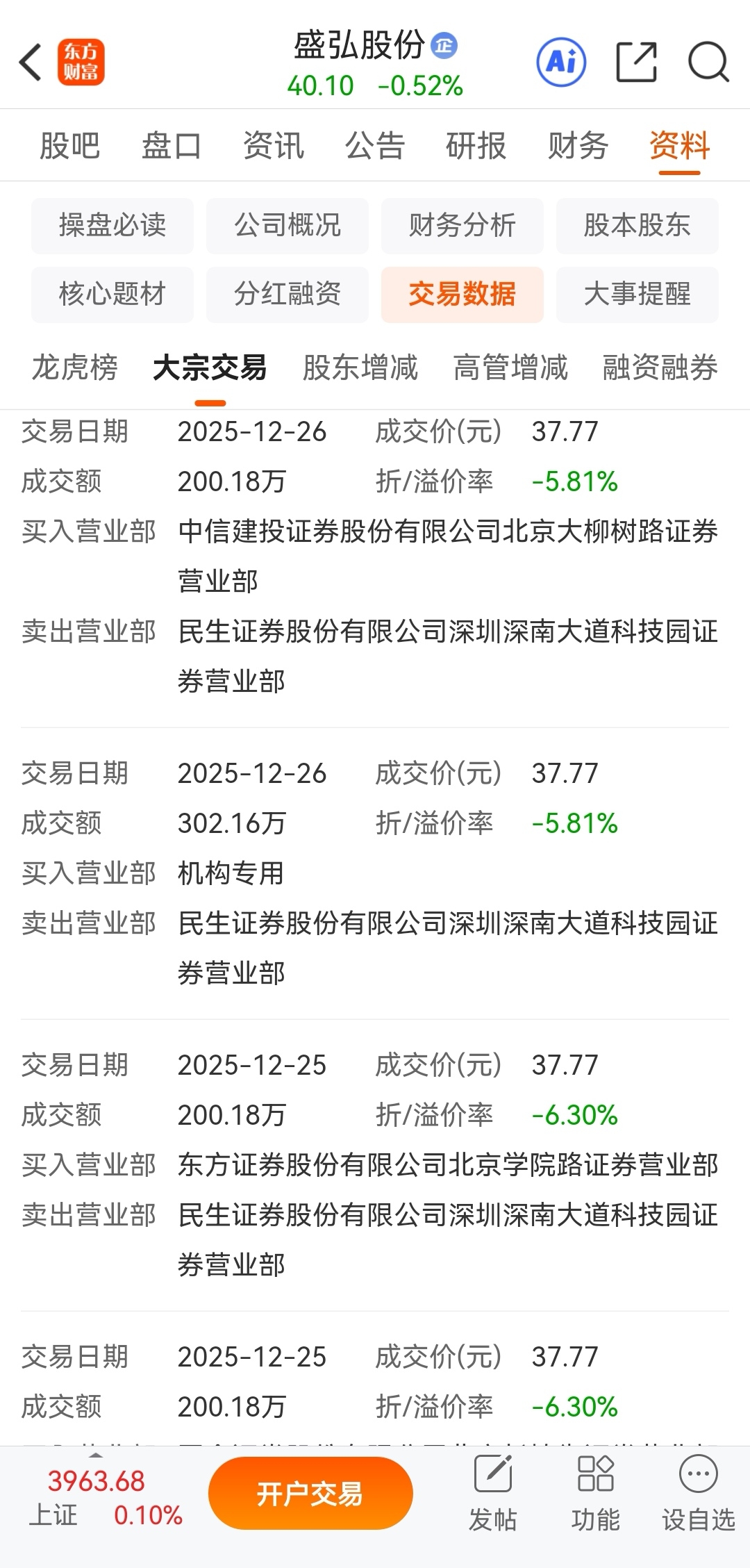 $盛弘股份(SZ300693)$ 连大宗都没什么人愿意大金额的买,找到的接盘侠都是两三百万的,都这样,它三四个亿的减持,得卖到猴年马月。所以这段时间,二级市场的砸盘,肯定也有减持的份额在里面