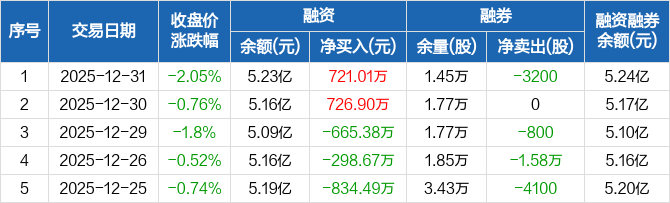 盛弘股份:融资净买入721.01万元,融资余额5.23亿元(12-31)