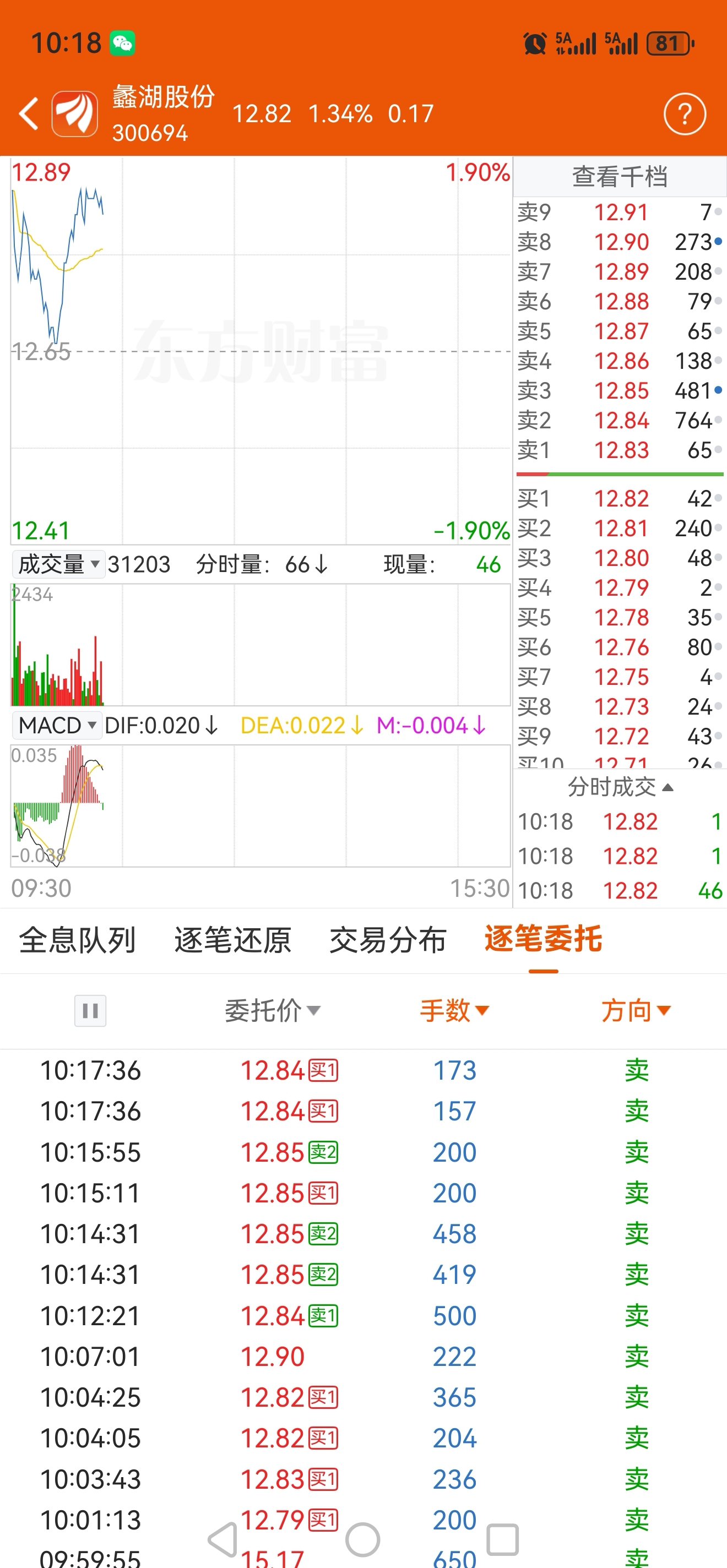 $蠡湖股份(SZ300694)$ 王姨今天又出了点货哦