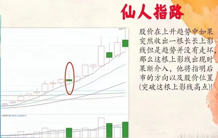 后续走势:形态出现后,股价并未走坏,反而继续沿趋势上行,最终突破了上影线的高点——这就是“仙人指路”的“指路”意义,明确了后续上涨的方向和目标位。