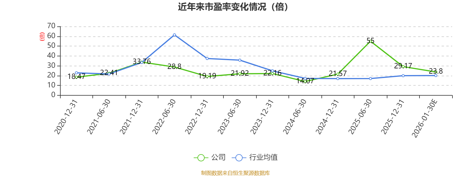 以本次披露业绩预告均值计算,公司近年市盈率(TTM)图如下所示: