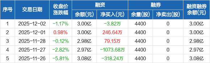 爱乐达:融资净偿还3.82万元,融资余额3亿元(12-02)