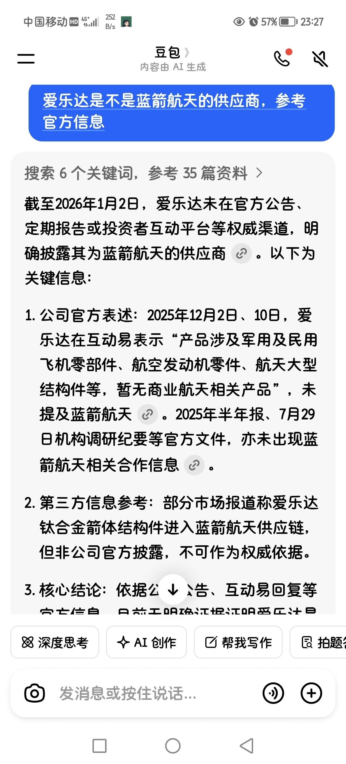 $爱乐达(SZ300696)$ 小作文说爱乐达是蓝箭航天供应商!
