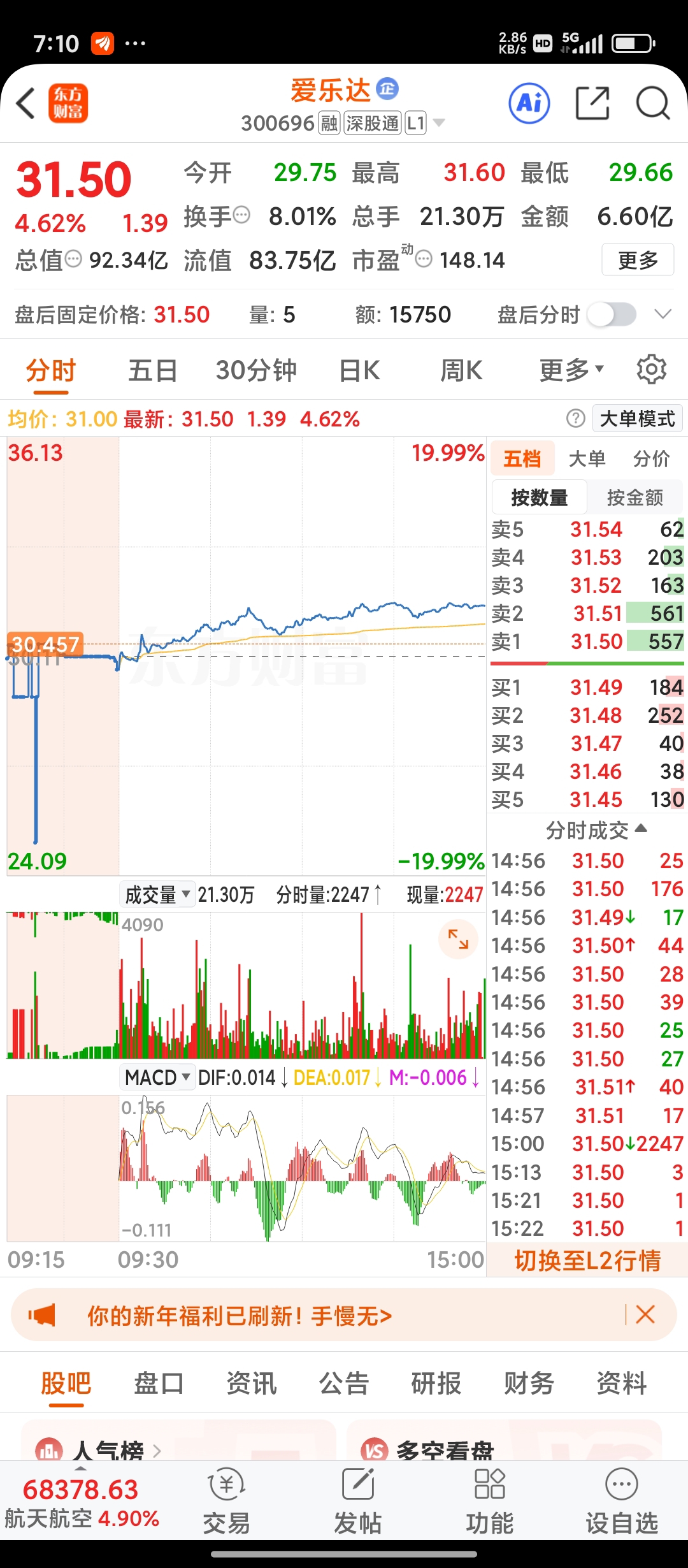 $爱乐达(SZ300696)$ 今天又拉高了,商业航天版块还有机会。#收盘点评#
