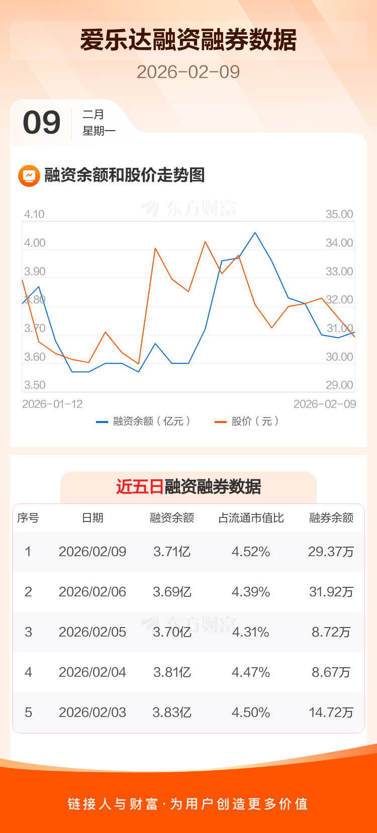 交易所最新数据显示,爱乐达于2026年2月9日获融资买入2978.16万元,融资偿还2753.70万元,当日融资净买入224.46万元。目前,该股融资余额3.71亿,占流通市值比例为4.52%。