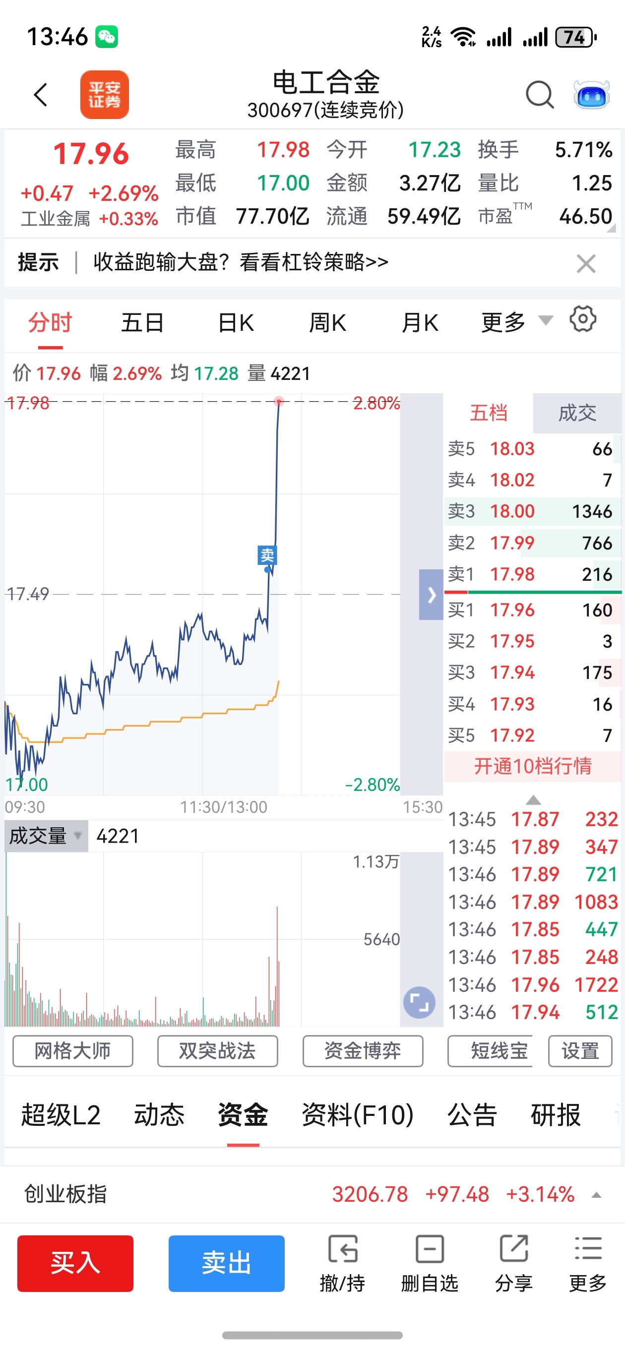 $电工合金(SZ300697)$ 服了,一卖就涨