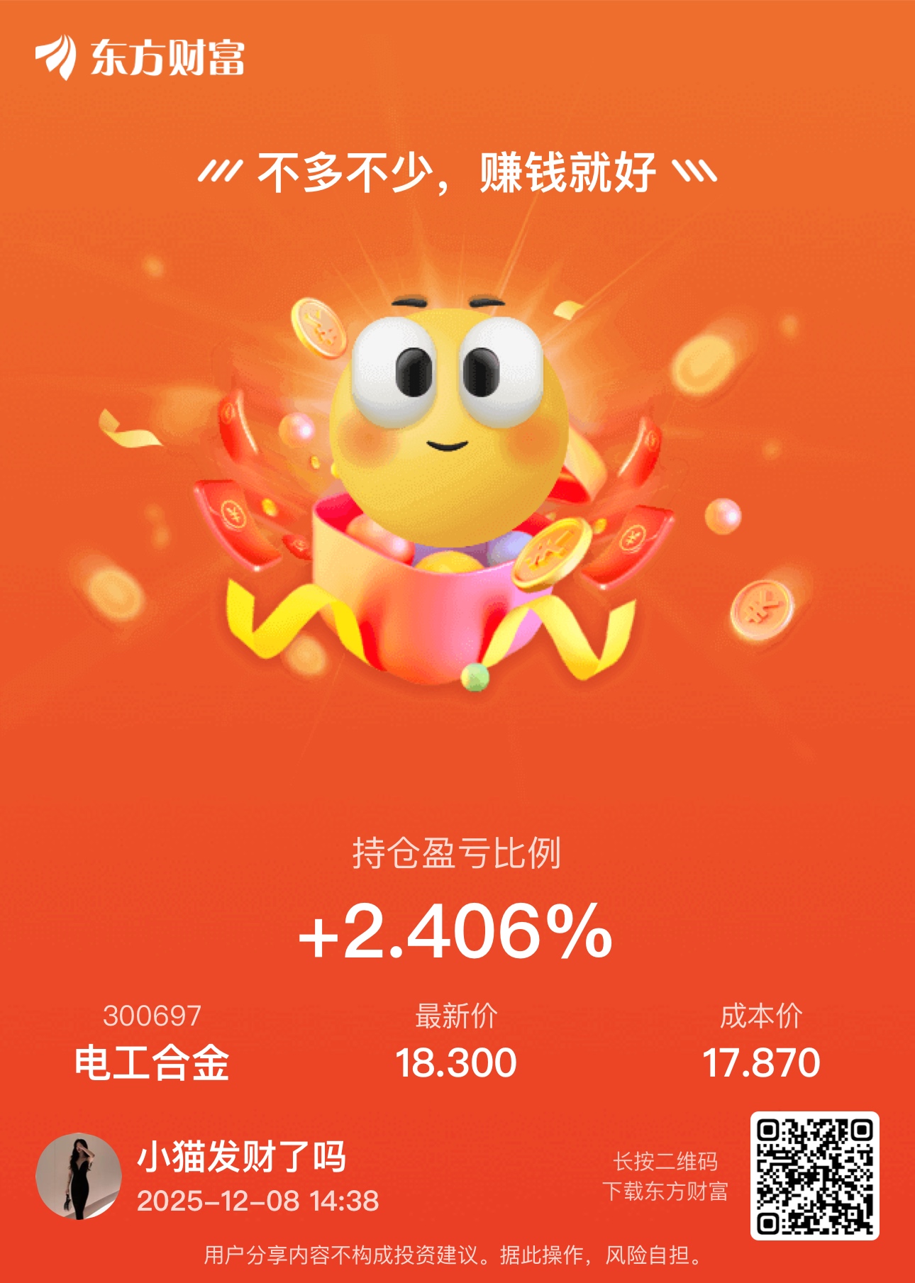 温馨提示: 1.根据《证券法》规定,禁止编造、传播虚假信息或者误导性信息,扰乱证券市场;2.用户在本社区发表的所有资料、言论等仅代表个人观点,与本网站立场无关,不对您构成任何投资建议。用户应基于自己的独立判断,自行决定证券投资并承担相应风险。《东方财富社区管理规定》