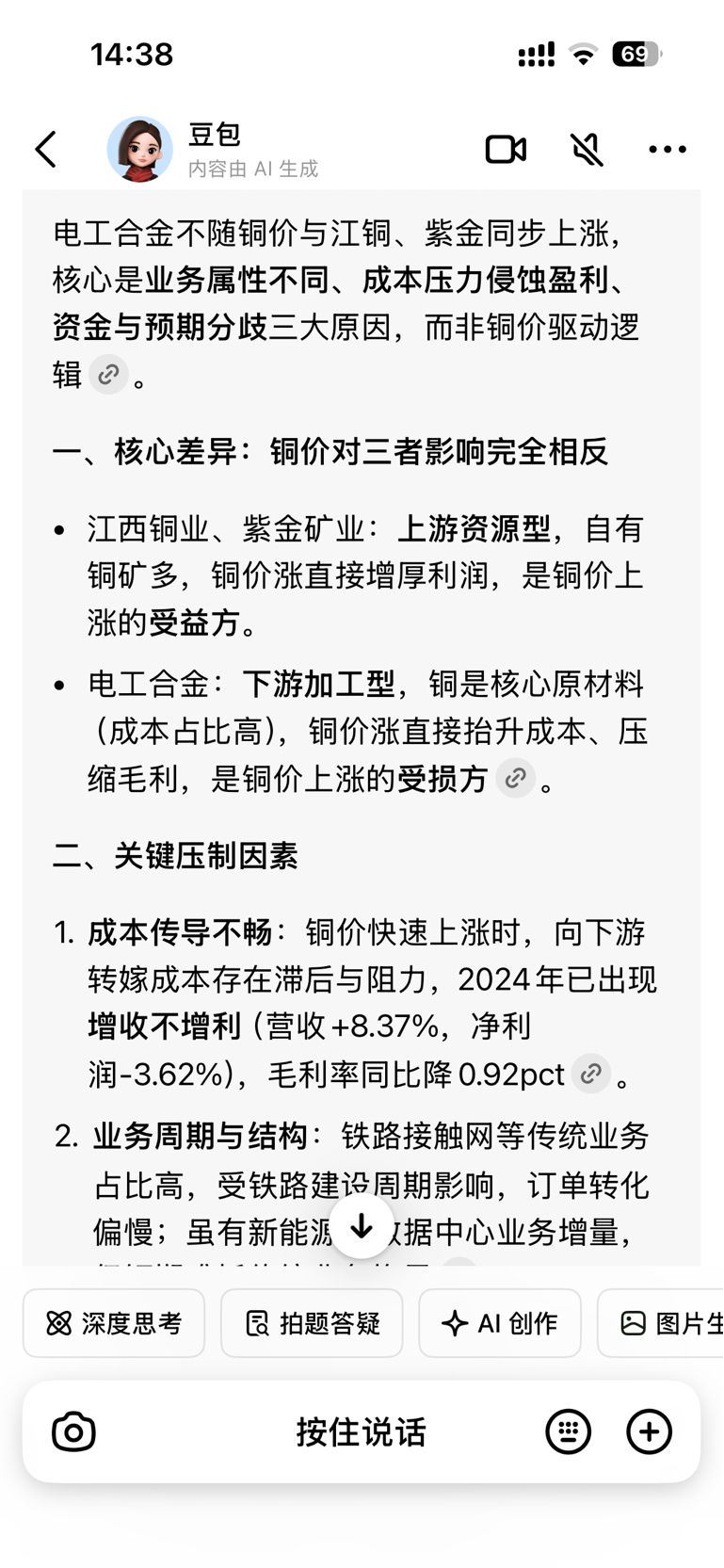$电工合金(SZ300697)$ 还有在看好的吗,说了就是加工企业还不信,铜价上涨是利空,成本上升,增收不增利