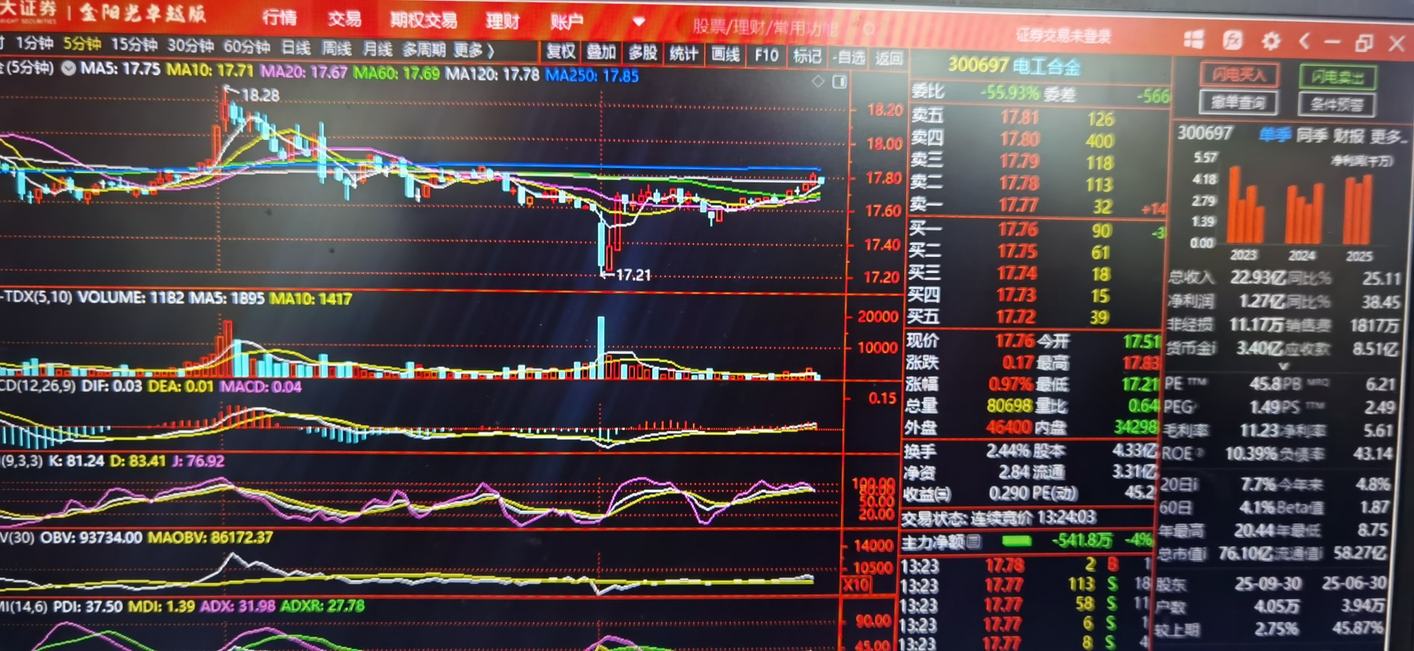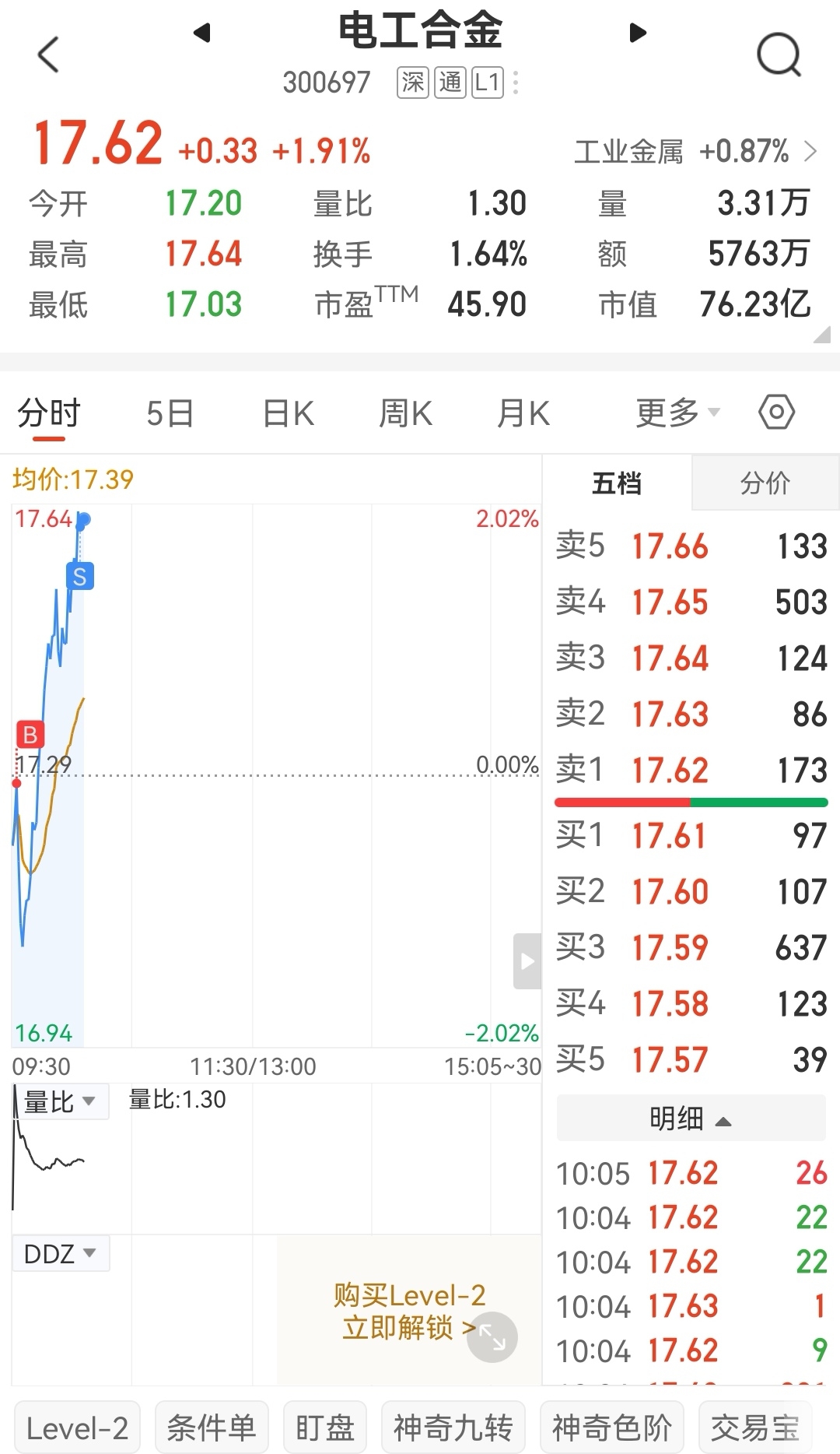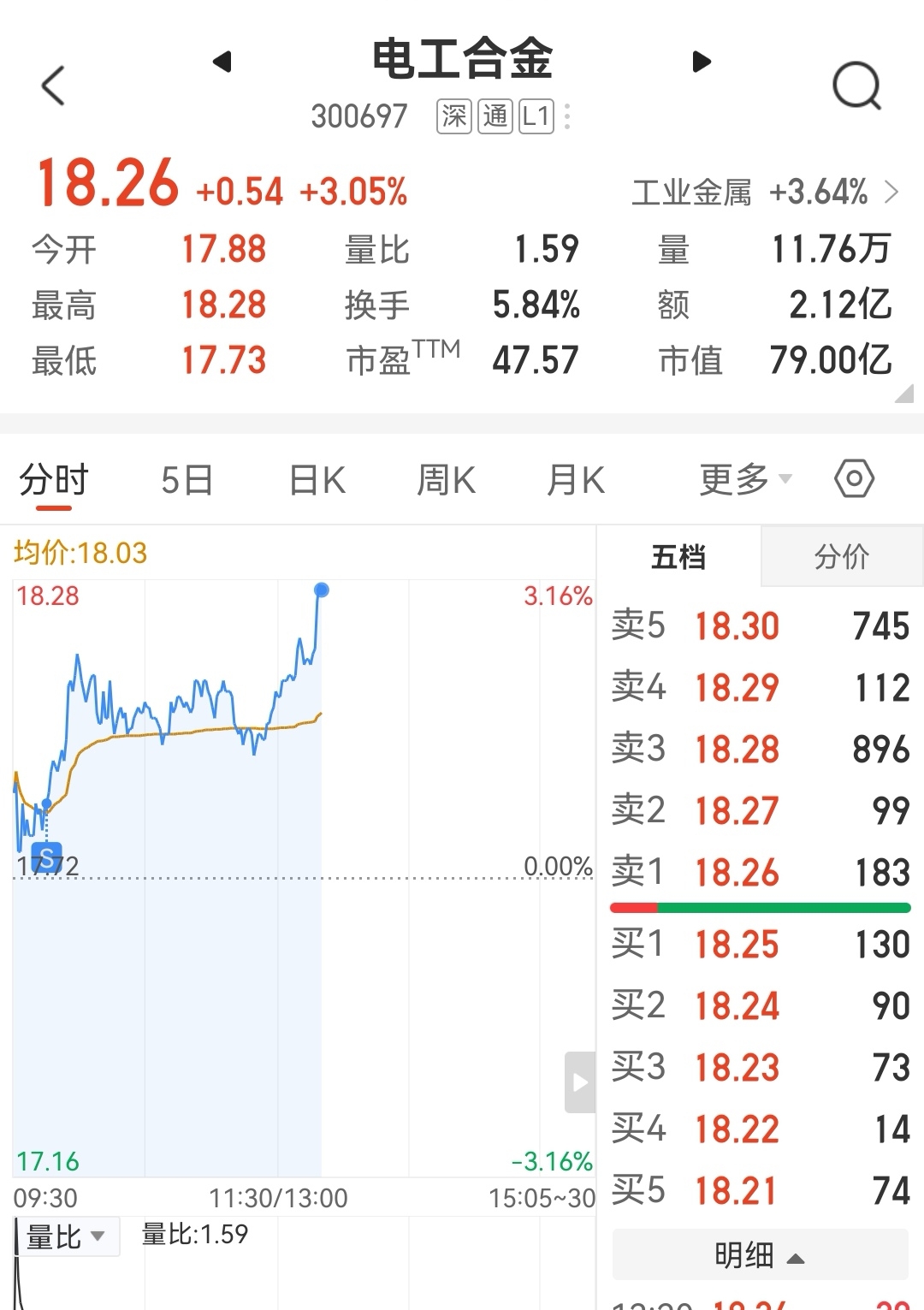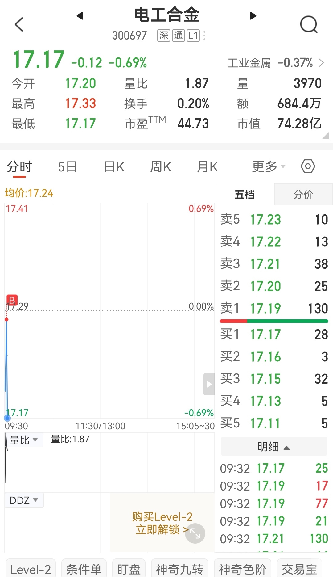 $电工合金(SZ300697)$ 要上18,必须再放量,短期均线压制股价,日线5刚刚死叉10线,只有突破短期1分钟5分钟趋势就看多电工。