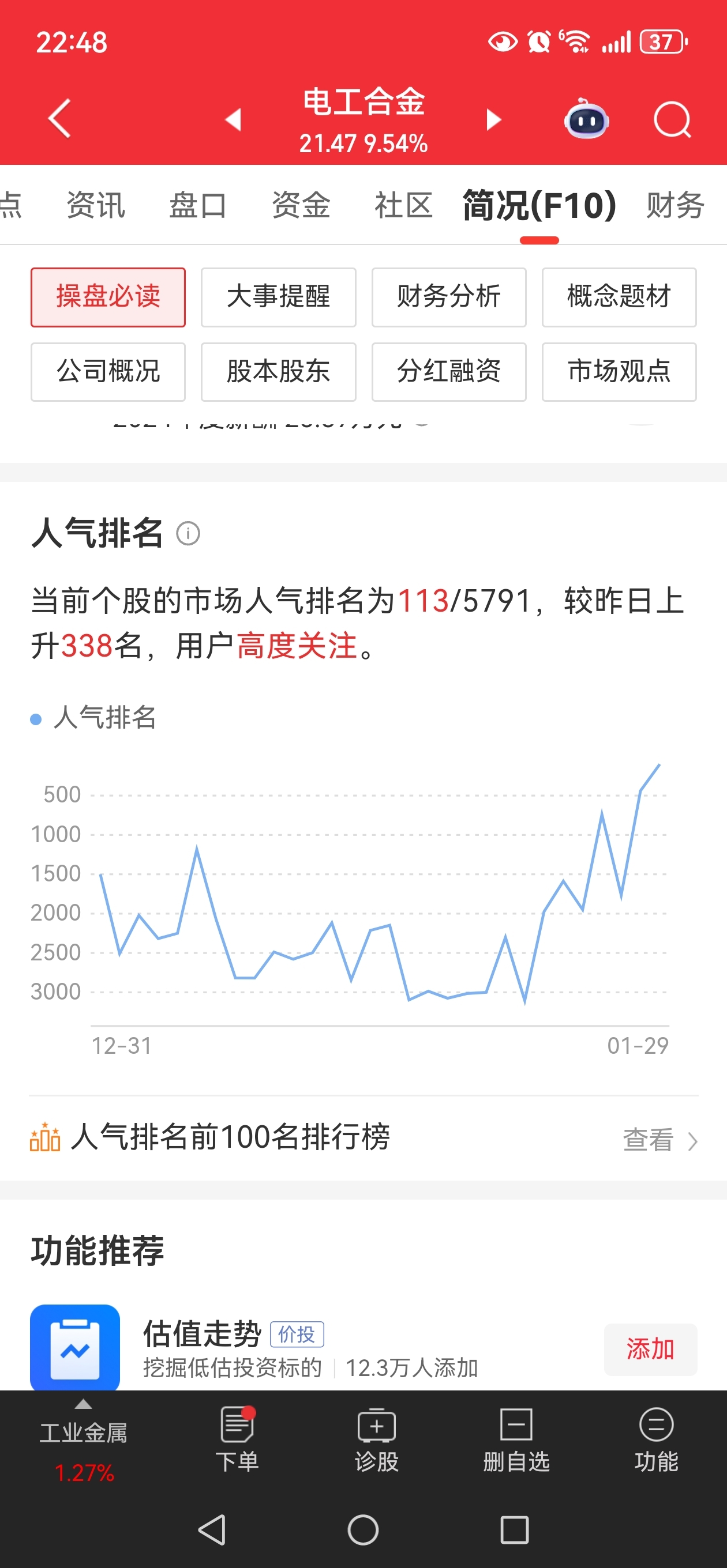 $电工合金(SZ300697)$ 同花顺一会就进前100了