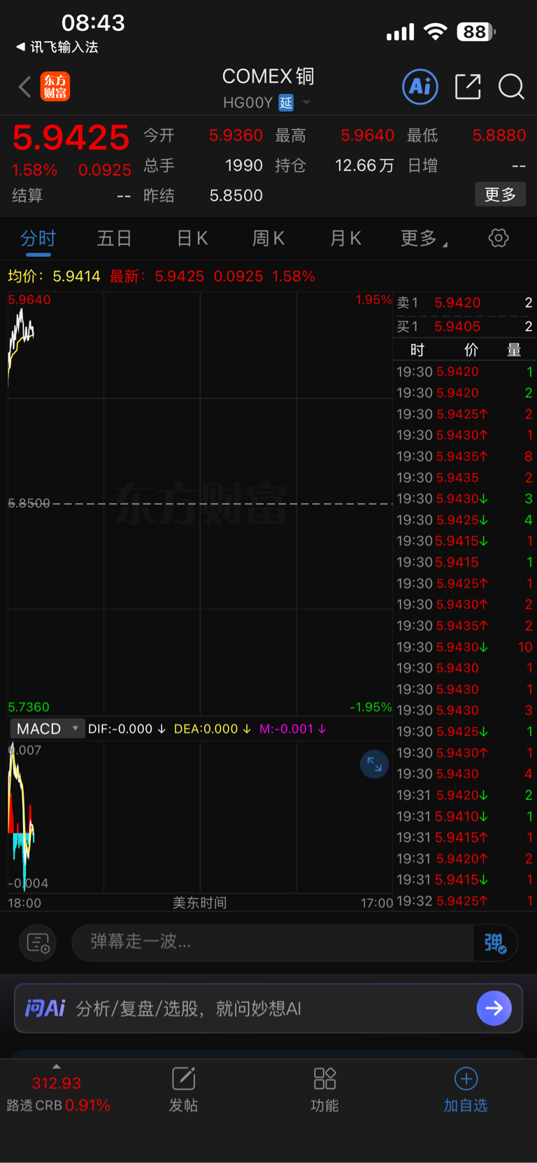 铜今天开盘又涨疯了,昨天卖了,还想今天开盘捡点便宜筹码呢,又要落空了。