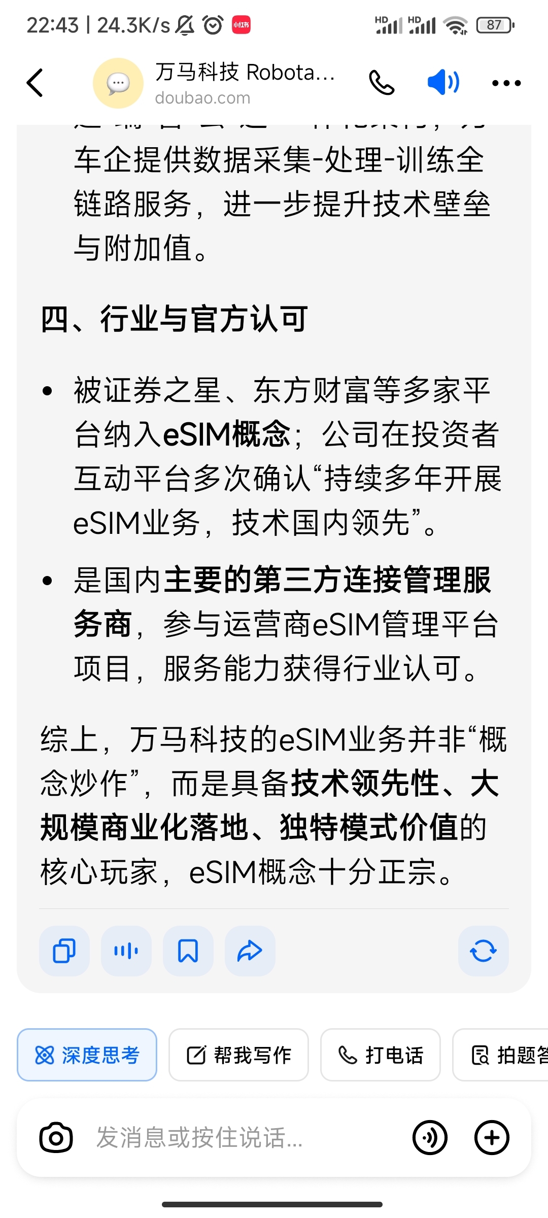 $万马科技(SZ300698)$ 今天小马智行暴涨,今天三大运营商esim概念落地