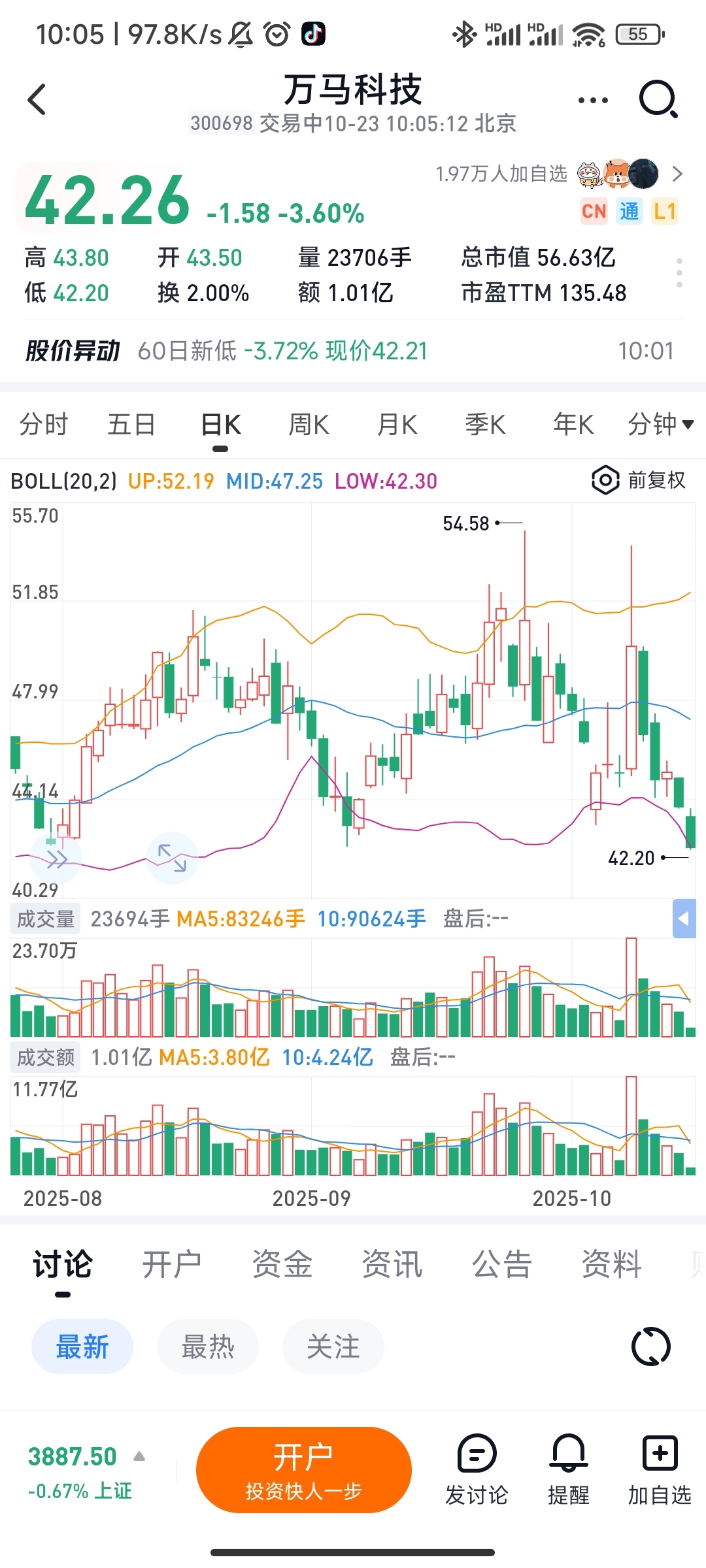 $万马科技(SZ300698)$ 触及BOLL下轨,超卖严重,大举加仓!