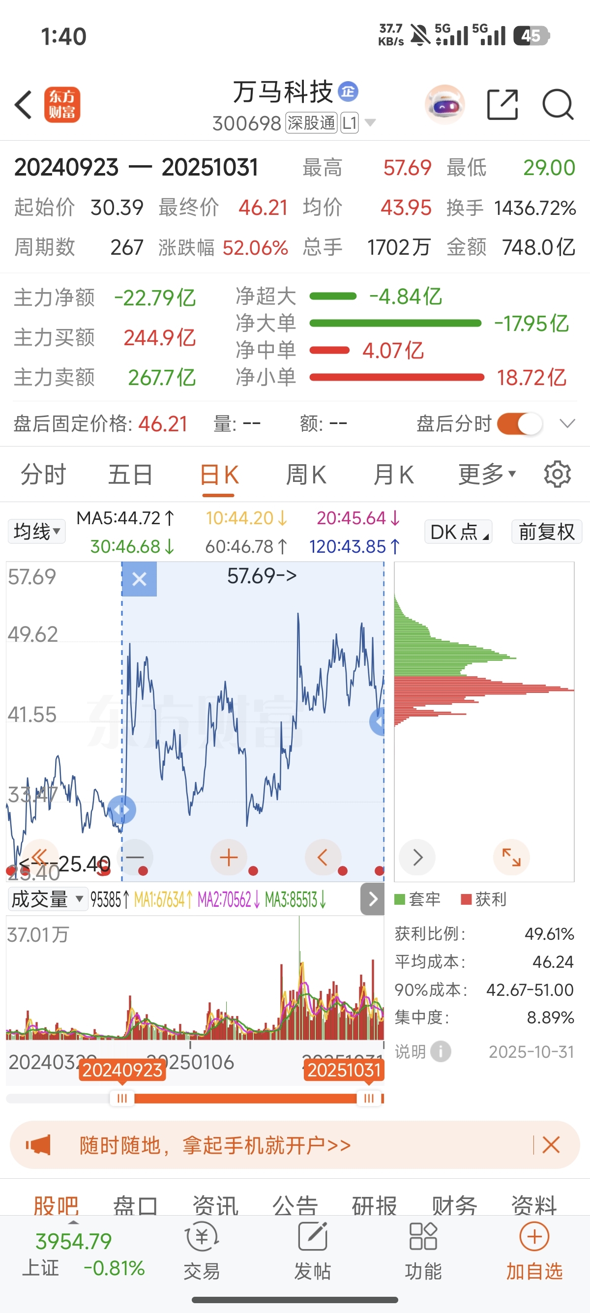 $万马科技(SZ300698)$ 潜力巨大而且这轮牛市喜欢股价高的。
