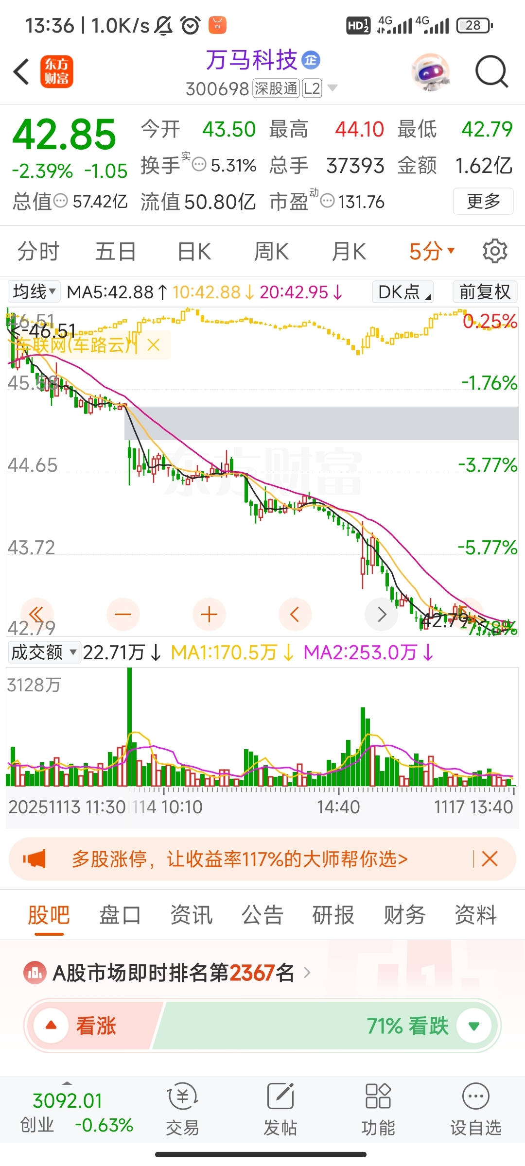 $万马科技(SZ300698)$ 钝刀刹人,每天都慌不择路的逃命,干脆一次卖完呗