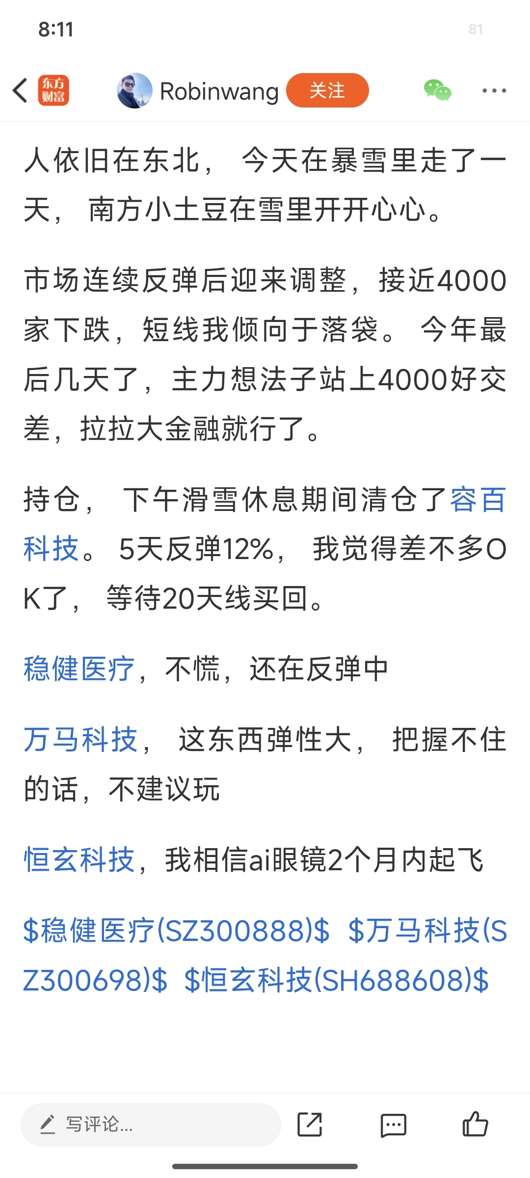 郑重声明:用户在财富号/股吧/博客等社区发表的所有信息(包括但不限于文字、视频、音频、数据及图表)仅代表个人观点,与本网站立场无关,不对您构成任何投资建议,据此操作风险自担。请勿相信代客理财、免费荐股和炒股培训等宣传内容,远离非法证券活动。请勿添加发言用户的手机号码、公众号、微博、微信及QQ等信息,谨防上当受骗!