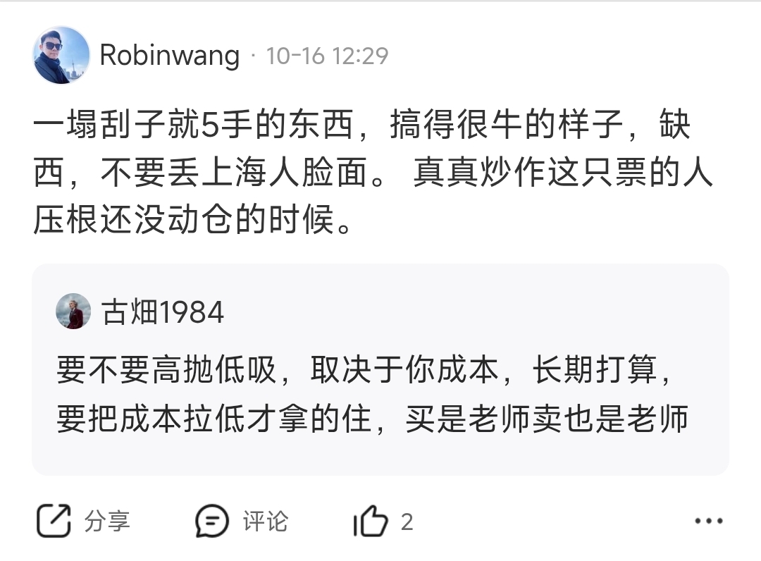 温馨提示: 1.根据《证券法》规定,禁止编造、传播虚假信息或者误导性信息,扰乱证券市场;2.用户在本社区发表的所有资料、言论等仅代表个人观点,与本网站立场无关,不对您构成任何投资建议。用户应基于自己的独立判断,自行决定证券投资并承担相应风险。《东方财富社区管理规定》