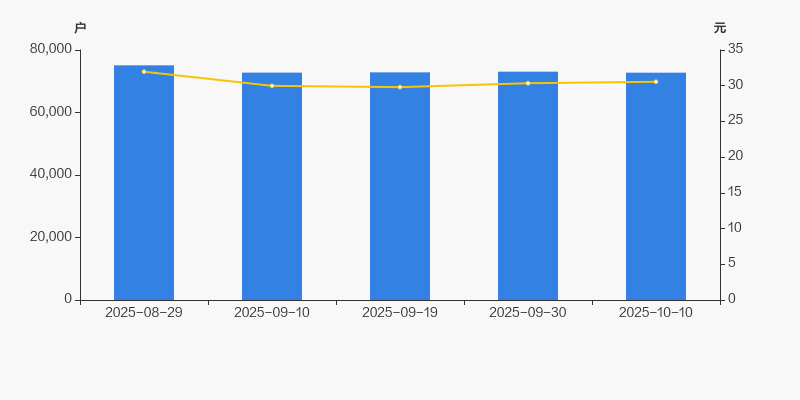 截至2025年10月10日,公司最新总股本为8.31亿股,其中流通股本为8.21亿股。户均持有流通股数量由上期的1.12万股上升至1.13万股,户均流通市值34.5万元。