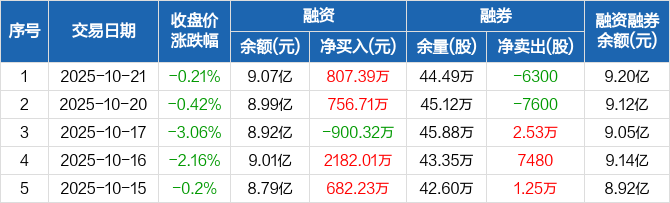 光威复材:融资净买入807.39万元,融资余额9.07亿元(10-21)