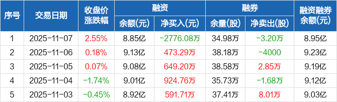光威复材:融资净偿还2776.08万元,融资余额8.85亿元(11-07)