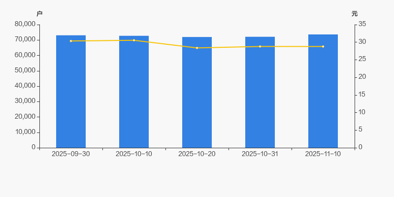截至2025年11月10日,公司最新总股本为8.31亿股,其中流通股本为8.21亿股。户均持有流通股数量由上期的1.14万股下降至1.12万股,户均流通市值32.11万元。