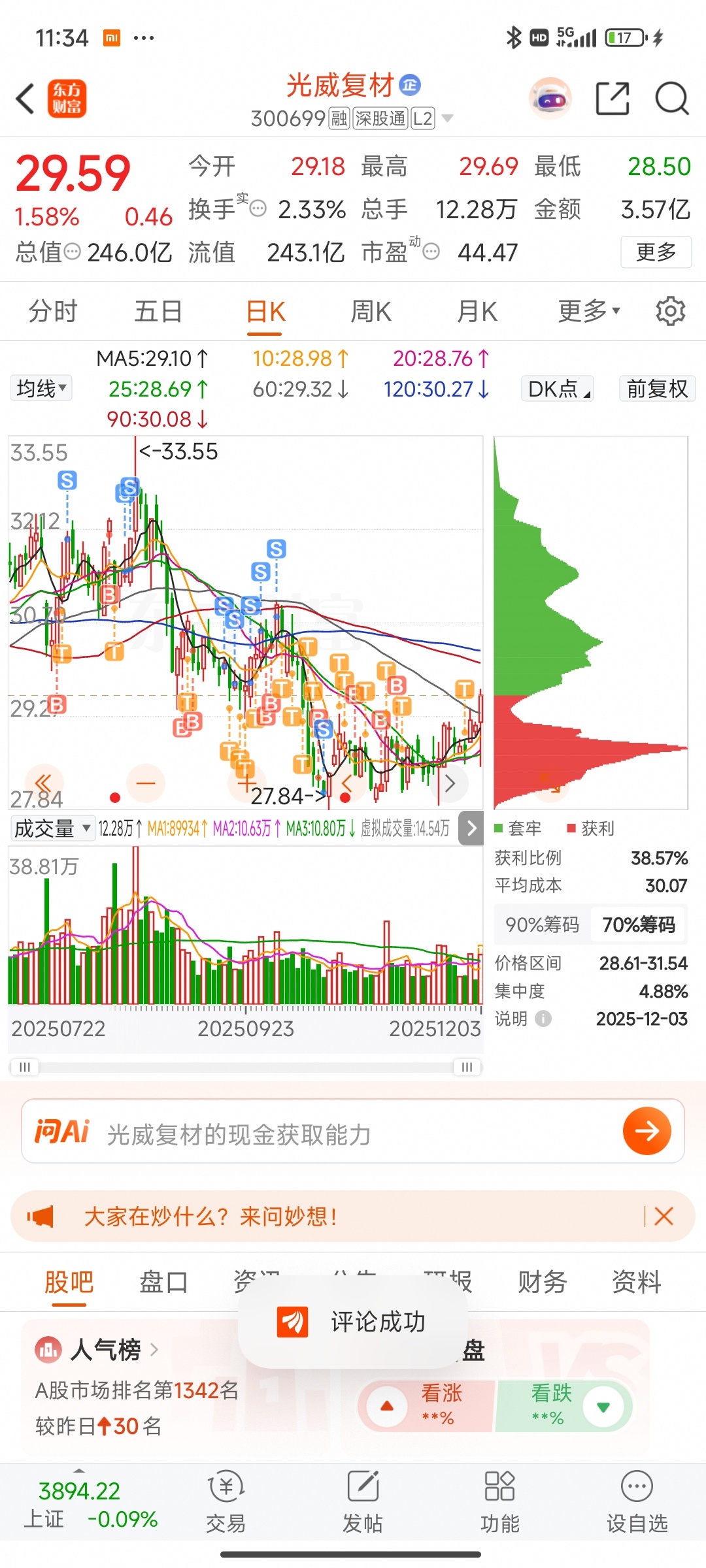 $光威复材(SZ300699)$ 朱莉你玩玩的过我吗 甩都甩不掉
