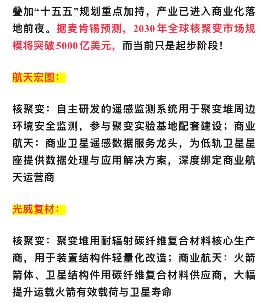 $光威复材(SZ300699)$ 1.正宗低位核聚变+商业航天2.【九天无人机~空天航母】周末全球刷屏~公司官网首次公开光威的T800H级高性能碳纤维硬核九天蓝天梦3.国际碳纤维巨头日本东丽~至2026 1月起碳纤维涨价10%到20%4.机器人领域将大量应用T800H级高性能碳纤维轻量化材料5.长征12号甲12.17号发射是该火箭3.35米直径复合材料液氧贮箱碳纤维供应商!