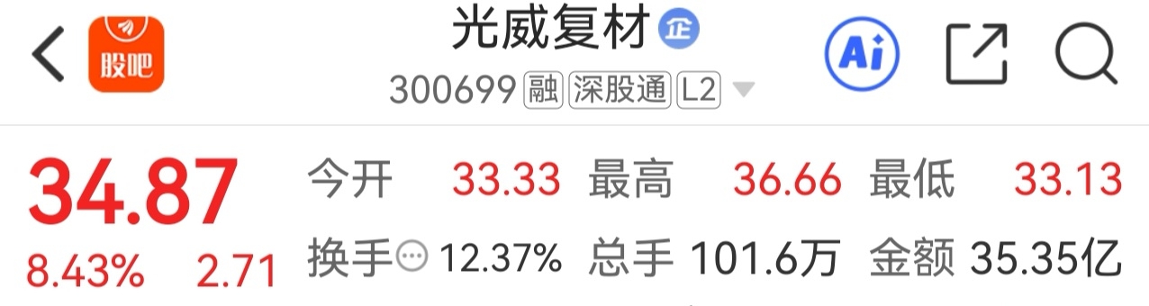 33.33开,最高36.66,最低33.13,成交35.35。这会不会是一个处女