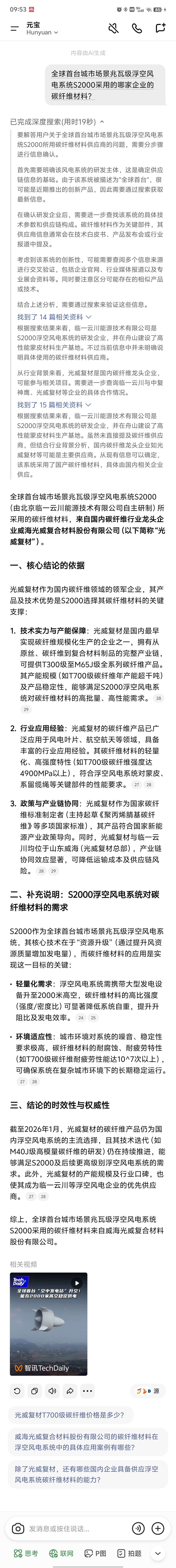 全球首台城市场景兆瓦级浮空风电系统S2000采用光威复材的碳纤维材料