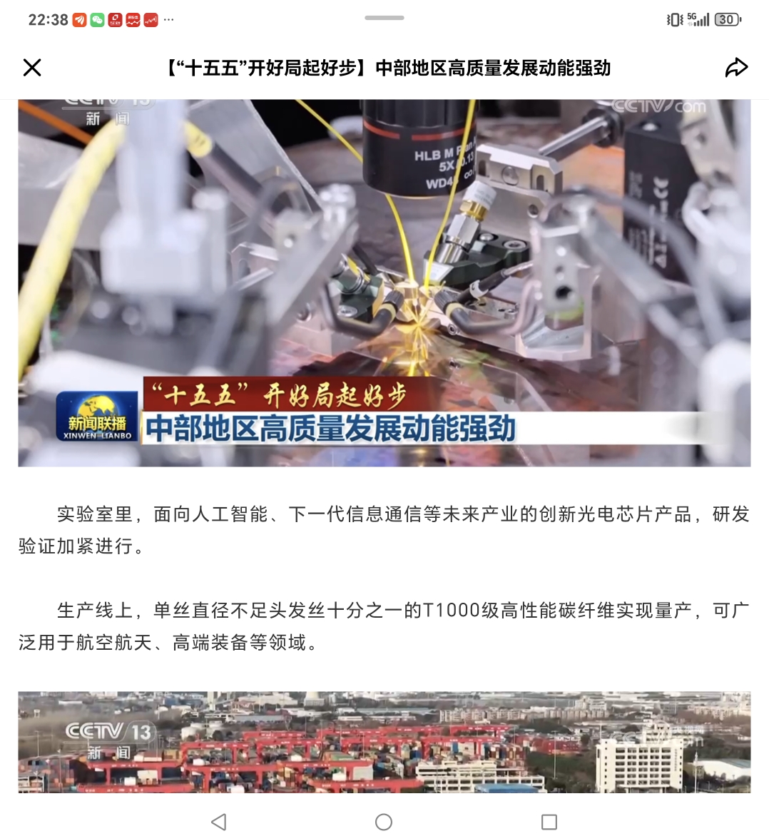 $光威复材(SZ300699)$ 央视新闻联播报道了!T1000