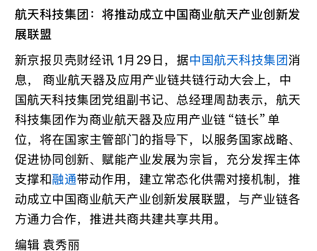$光威复材(SZ300699)$ 氢能联盟之后,航天材料联盟又来了航天科技集团:将推动成立中国商业航天产业创新发展联盟